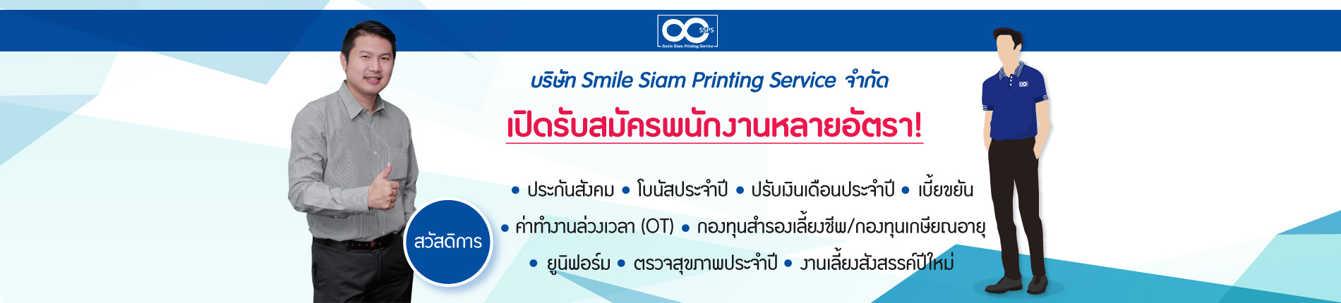 บริษัท สไมล์ สยาม พริ้นติ้ง เซอร์วิส จำกัด 55-55/1 ถนนเพิ่มสิน 68 แขวงออเงิน เขตสายไหม กรุงเทพฯ 10220
