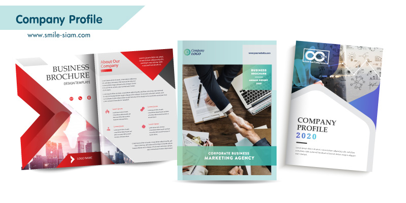 Company Profile, Corporate Profile, Proposal จริงๆ เรียกได้หลายอย่างแล้วแต่ความถนัดของผู้สื่อสาร เป็นสื่อสิ่งพิมพ์ที่ช่วยแนะนำบริษัท ให้ข้อมูลบริษัทที่ชัดเจน Company Profile ที่ดีควรอ่านง่าย ข้อมูลรวบรัดชัดเจน รูปภาพที่มองแล้วสะท้อนให้เห็นถึงบริษัท ไม่ควรมีตัวหนังสือเยอะเกินไป นิยมทำเป็นรูปเล่มโบรชัวร์ หรือแคตตาล็อค หากเราออกแบบดี สวยงาม หรือดึงดูด ก็จะช่วยสร้างภาพลักษณ์ให้กับบริษัท ลูกค้าสามารถจดจำได้ดี