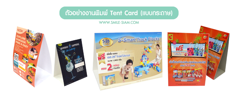 Tent Card มีรูปทรงที่จัดวางง่าย น้ำหนักเบา สามารถจัดวางบนสินค้าได้ และเราสามารถใส่ข้อมูลสินค้า หรือโปรโมชั่นลงไปได้อย่างครบถ้วน