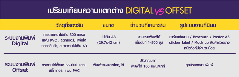 หลายท่านคงอยากรู้ว่า ระบบการพิมพ์ดิจิตอล ( Digital Offset Printing ) และ ระบบการพิมพ์ออฟเซ็ท ( Offset Printing ) ต่างกันยังไง เลือกงานพิมพ์ระบบไหนถึงจะดีและคุ้มค่าที่สุด เราหาคำตอบมาให้คุณแล้วค่ะ