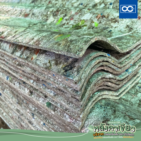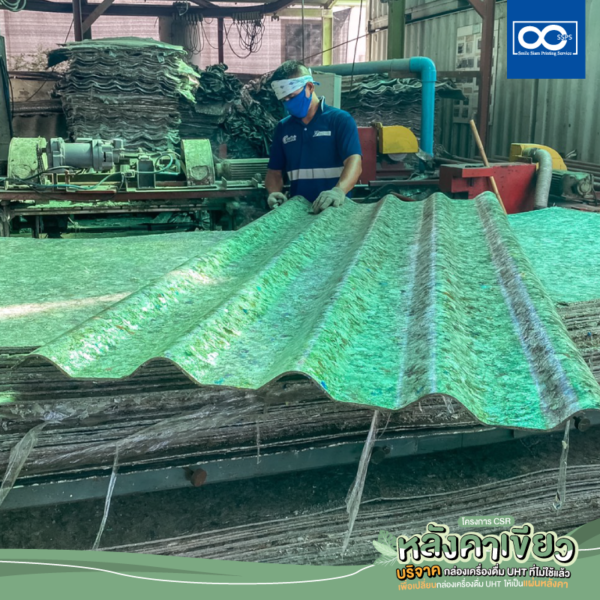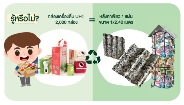 (คุณรู้หรือไม่? กล่องเครื่องดื่ม UHT 2,000 กล่อง = หลังคาเขียว 1 แผ่นขนาด 1 x 2.40 เมตร)