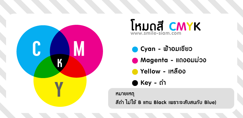 - Key สีดำ (สีดำ ไม่ใช้ B แทน Black เพราะจะสับสนกับ Blue)