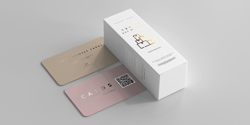 ตัวอย่าง : กล่องและนามบัตรแบรด์นี้ จะเน้นที่ข้อความหรือ LOGO ด้วยการเพิ่มเทคนิคหลังพิมพ์อย่างการปั๊มฟอยล์เงิน หรือฟอยล์ทองบนงานพิมพ์