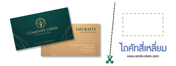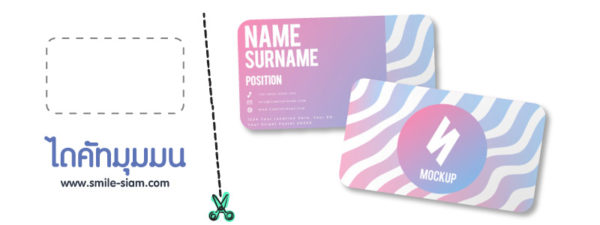 - การไดคัทสี่เหลี่ยมมุมมน : คือ การใช้บล็อกใส่มีดสี่เหลี่ยมมุมมนปั๊มลงไป งานที่ออกมา มุนจะมนทันที