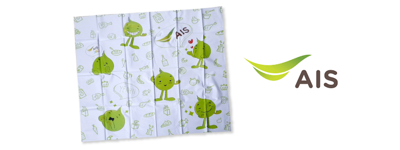 4. สร้างความสดใส ให้รู้สึกดีกับสินค้าทั้ง ๆ ที่ AIS ไม่ได้เกี่ยวกับอาหารใด ๆ เลย แต่การทำ Happy Brand บนผ้าปูโต๊ะ ลายดูสดใสน่ารัก นั่งทานแล้วแฮปปี้ เราจะรู้สึกดีกับการใช้งาน AIS ทันทีเลยนะคะ