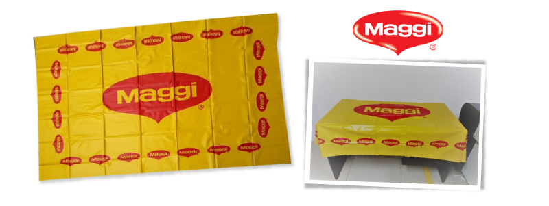 1. สร้างภาพจำ โดยการใส่ Logo บนงาน ให้เด่น ๆ อย่างผ้าปูโต๊ะของแบรนด์ Maggi เห็นแล้วก็อยากเหยาะแม็กกี้ลงในไข่ดาวเลยใช่มั้ยล่ะคะ ?