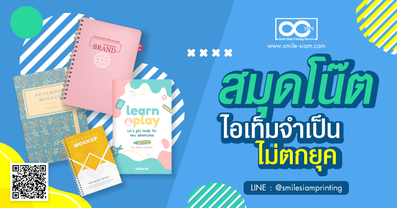 เป็นอย่างไรกันบ้างคะ สำหรับบทความนี้ หากคุณสนใจผลิตสมุดโน๊ตสามารถปรึกษาทีมขายของเราได้ที่ LINE @smilesiamprinting