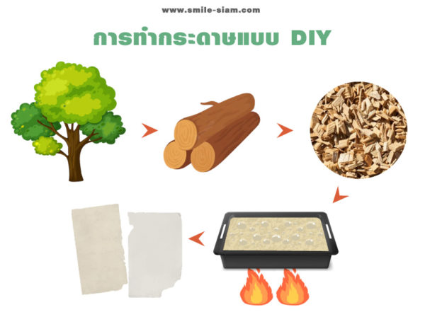 การนำเอาต้นไม้มาทำเป็นเยื่อกระดาษก็ตามภาพเลยค่ะ ภาพนี้จะเป็นการทำกระดาษแบบอุตสาหกรรมใหญ่ ๆ ก็คือกระดาษ A4 ที่เราใช้กันอยู่ในทุกวันนี้ไงคะ