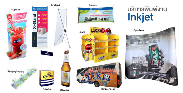 แบบนี้เห็นบ่อย ๆ ค่ะ รับทำป้าย พิมพ์งาน Inkjet งานที่ทำก็ เช่น ป้ายชื่อร้าน sticker Banner แบบนี้คือ “โรงพิมพ์ Inkjet” ขนาดเล็ก ๆ ตามหัวถนน ทำงานได้ไม่มากค่ะ คุณภาพก็ตามขนาดของเครื่อง แต่หากทำเป็นอุตสาหกรรม ต้องมีทั้งเครื่องพิมพ์ Inkjet Indoor / Outdoor / Flatbed ครบค่ะ เพื่อรองรับงานจำนวนมาก ๆ เช่น Banner 3,000-5,000 ผืน พิมพ์หลาย ๆ แบบได้เลยค่ะ