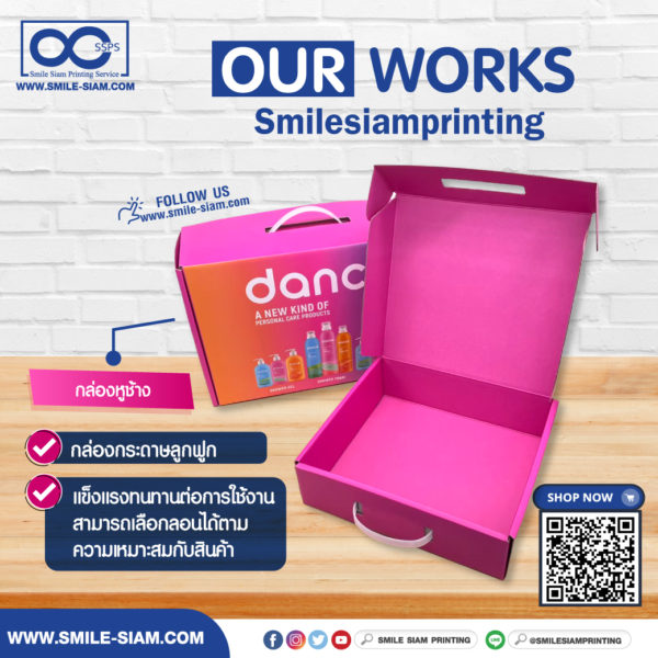 - ข้อดี แข็งแรง ทนทาน และกันกระแทกได้ดีค่ะ ทำแบบมีหูหิ้ว หรือไม่มีก็ได้ค่ะ พิมพ์แค่ด้านนอก 1 ด้าน หรือจะพิมพ์ด้านในด้วยก็สามารถทำได้ การพิมพ์สีด้านใน *ช่วยให้สินค้าที่ใส่ดูดีขึ้นด้วยค่ะ