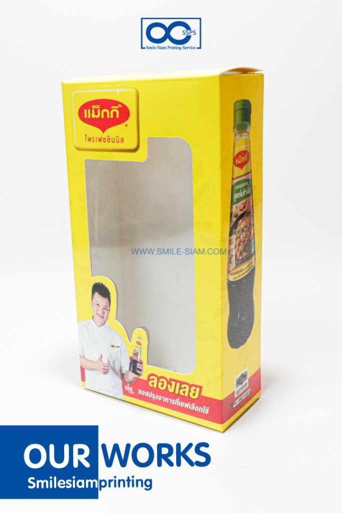 คือ กล่องที่จะเปิดโล่งไว้ 1 ด้านเพื่อโชว์สินค้าด้านในค่ะ นิยมทำเป็นกล่องใส่แก้ว ใส่ขวดเหล้า ไวน์ จะเปิดแบบโล่ง ๆ เลย หรือติดแผ่นใส (เซลลูลอยด์) เพื่อให้มองทะลุได้ ก็ทำได้ค่ะ หากนำมาใส่ของแตกได้ แนะนำที่กระดาษ กล่องแป้งหลังเทา หรือ Art card 350 แกรมขึ้นไป หากต้องใช้ขนส่งแบบสั่งของ online แนะนำให้ใช้กระดาษลูกฟูกแทนนะคะ ตรงส่วนที่ไดคัทเป็นหน้าต่าง *เราออกแบบเป็นลายต่างๆได้นะคะ ไม่จำเป็นต้องทำเป็น วงกลม หรือ 4 เหลี่ยมเท่านั้น เพราะราคาไม่ได้แพงขึ้นค่ะ เน้นที่ Design ได้เลยค่า