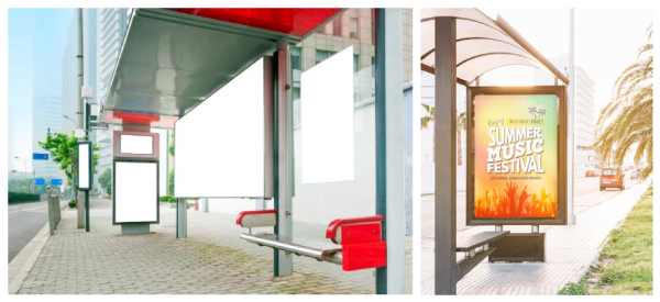 ตัวอย่างงานโฆษณาที่ติดบริเวณป้ายรถเมล์